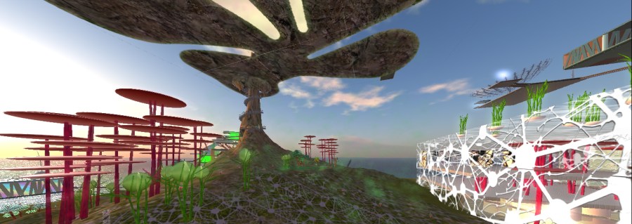 Io la definisco una land “autoriale”. E’ autoriale nel suo DNA, nel modo in cui architetto e builder l’hanno intessuta, tesa fra cura artigianale del particolare e capacità di dare forma alla “struttura che connette”, quella rete fra terra e biologico che qui può prendere consistenza. In tal senso la realtà di questo luogo è post-rappresentazionista, non sta per altro ma per se stesso ed è pronta ad abbracciare i vissuti degli avatar e farli interagire con la sua narrazione.