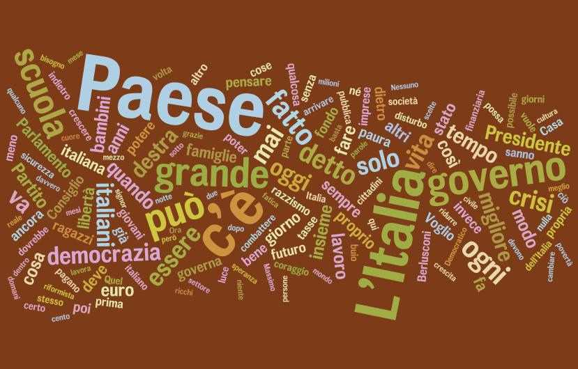 Il discorso produce una tag clouds (wordle generated) – a caldo e non troppo ripulita – che parla da sola.