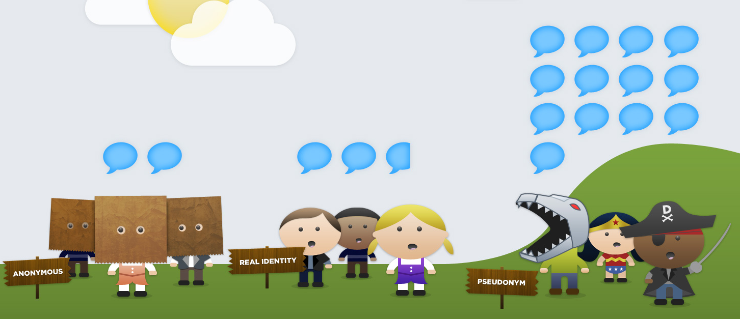 Disqus maintains that not only does allowing pseudonyms produce more comments, but the quality of the comments is also better, as measured by likes and replies.
