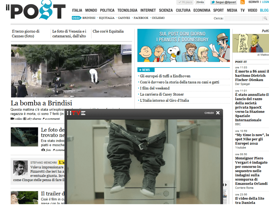 Ora, non perdiamoci in moralismi o facili j’accuse sulle testate, anche se alcune più di altre giocano con il meta contesto pubblicitario in modo più aggressivo. Oppure non creiamo distinguo tra i nativi web e le testate tradizionali. Non mi è andata meglio con il Post in cui parte un video.