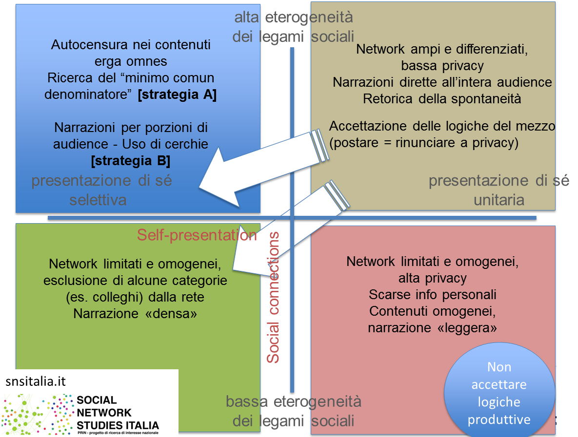 “Presentazione di sé selettiva orientata all’esclusione comunicativa – alta eterogeneità dei legami sociali”